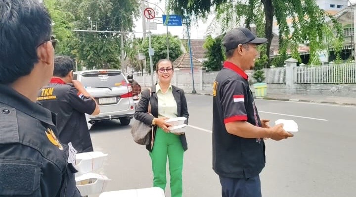 Dalam kegiatan tersebut, sebanyak 300 kotak nasi dibagikan kepada masyarakat sekitar dan pengguna jalan yang melintas. Aksi ini merupakan bentuk kepedulian sosial dan komitmen TKN untuk terus hadir di tengah masyarakat.