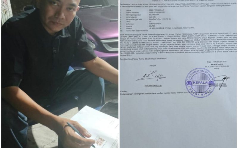 Gelapkan Mobil Warga Aceh, Andi Laporkan Riko Wijaya ke Polres Binjai